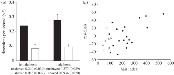 研究者最后统计了实验结果,他们发现,由于体毛的存在使臭虫行动更为困难,因此体毛越多,臭虫寻找叮咬点的时间就越长。这类似于人在大街上行走比在灌木丛中行走要快一样。另外,志愿者也花费了更多的时间来察觉臭虫在已剃体毛胳膊上的存在,这令研究者非常惊讶,而在正常胳膊上,在臭虫寻找到叮咬点之前,志愿者都能察觉到它的存在并驱赶它。同时,男性由于体毛较女性多而更容易察觉臭虫的存在。体毛多代表寄生虫少,就更容易被女性选为伴侣,这就是自然规律。