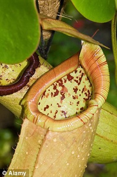 “红心女王”的瓶状叶利用多孔的结构捕捉老鼠和其他小型动物。这种食肉植物捕猎成功后,会利用盐酸和酶把猎物分解掉,过程类似人类的胃