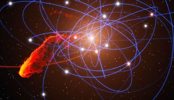 天文学家发现这个天体正向银河中心的超大质量黑洞飞去,它正以5000英里/时的加速度向前疾驶。它将于2013年撞上黑洞