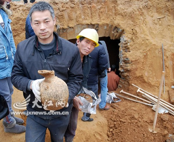 2011年12月31日,南昌市博物馆的工作人员对古墓进行抢救性挖掘,从古墓中找到了4件器形完整的汉代陶器及汉代微型灶台、大量瓷片铁器残片和鎏金青铜残片。