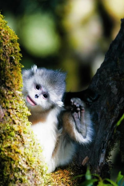 “金毛的是川金丝猴,其实滇金丝猴背上是黑毛,臀部、腹部和胸部为白毛,雄猴的头顶中央还有长长的黑色毛冠,就像时尚的朋克头。如果在树林中与滇金丝猴突然相遇,你能看到的通常就是一个黑白相间的身影一闪而过。”吕龙宝说起来滔滔不绝。