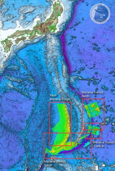 最近,美国海军一艘海道测量船使用一种绘制海底地图的标准装置——多波束回声探测器,把马里亚纳海沟从北到南绘制成图。这艘同新罕布什尔大学沿海与海洋测绘中心(CCOM)保持着联系的海道测量船,以地图的形式再现了整个马里亚纳海沟的地形情况,而且分辨率保持在100米。