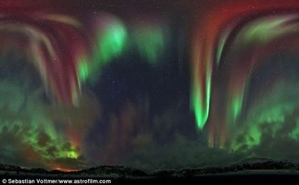 德国摄影师塞巴斯蒂安-沃尔特默拍摄了一幅堪称迄今为止最棒的极光照片,展现这种绚烂的大气光学现象。一位职业天文学家在美国宇航局每日一图(APOD)栏目上表示:“这幅广角照片经过水平压缩处理,展现了令人意想不到的极光景象。一个月前,挪威东部的夜空出现绚烂的极光。”