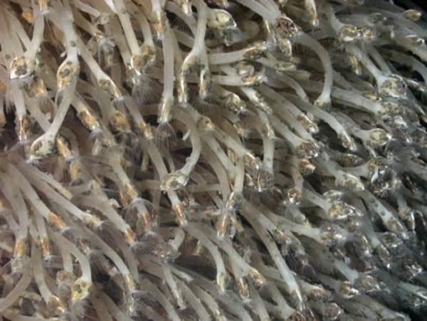 新发现的20多种动物中,大部分都是一种“雪蟹”,这种蟹的体长大约是16厘米,它们生活在热液喷口上,多达600只雪蟹聚集在一起