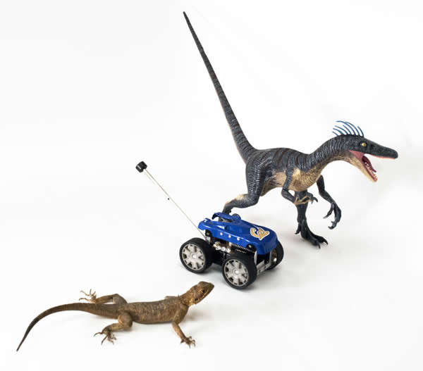 迅猛龙虽然已经灭绝,但我们可以通过研究它们现代的近亲蜥蜴来了解它们尾巴的功能。Full研究团队利用多台高速摄像机以及动画捕捉器,记录了一种名叫红头非洲飞龙蜥蜴(red-headed African Agama lizard)如何在不同平台间跳跃或滑落过程中利用尾巴来控制身体旋转,维持身体平衡的。