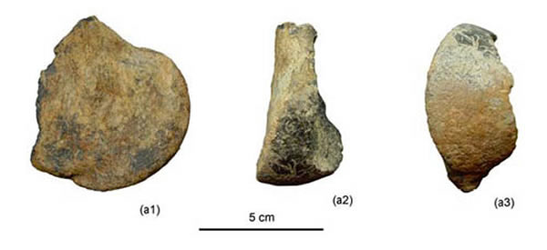 藏北伦坡拉盆地论波日地点丁青组上部近无角犀肱骨标本(a1内面视, a2前面视, a3远端视)(邓涛供图)