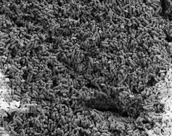 硫还原地杆菌的电子显微镜照片。这种细菌是基于微生物燃料电池的系统的核心