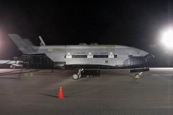 美国空军摄影师拍摄到2010年12月3日X-37B太空飞机着陆地面的情景