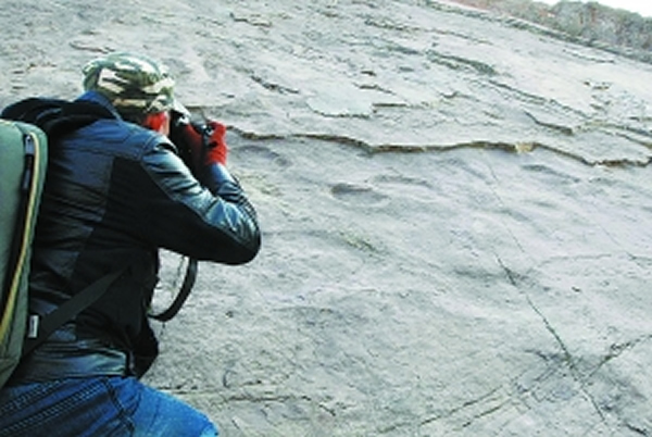 “我们可以把恐龙足迹看成是恐龙脚部的软体部分在大自然中制造的模型。”张建平说,“恐龙足迹能反映许多恐龙行为方面的信息,比如群居、奔走速度等。另外,大量相同类型的足迹保存在一起,也揭示了恐龙群体生活的信息。而且,恐龙足迹是原地埋藏和保存的,这就为指示化石保存地的古环境提供了可靠的信息。”