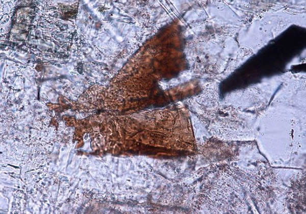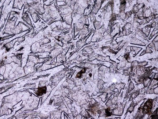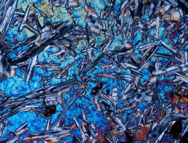 粗玄岩薄片包含静海石,这种矿物曾被认为是月球独有的,但是现在人们认为它在地球上很常见