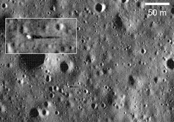 月球勘察轨道飞行器拍摄的月球表面一处18米长的阴影