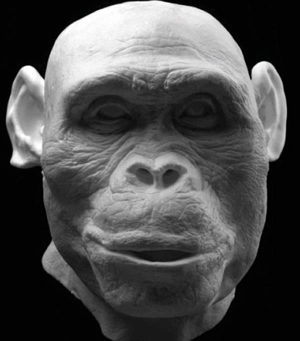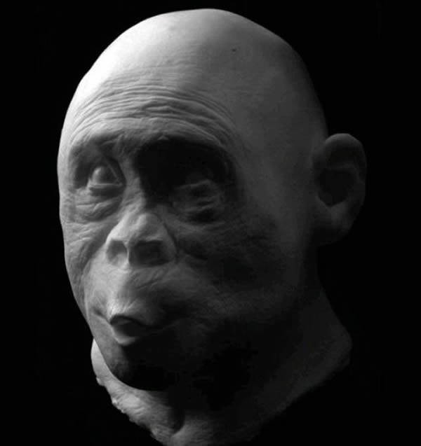 在南非发现的非洲南方古猿(Australopithecus africanus)颅骨被用来重塑这个祖先面部模型,这种人生活在大约200万年前,被称作德兰士瓦迩人(Plesianthropus transvaalensis)