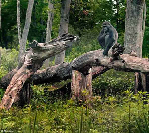 陷入沉思:大猩猩保持这个姿势有两三分钟