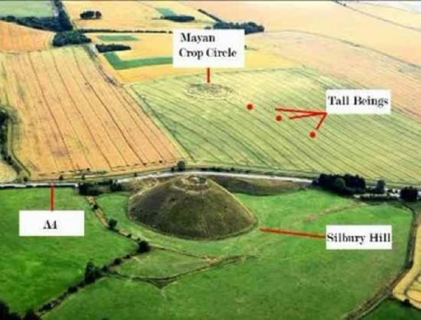 2009年7月期间,Wiltshire警区的警长在Silbury Hill 附近,见到三个疑似外星人的物体,不久之后麦田圈出现!那物体超过6尺高,金色头发!警长听见静电声外,还见到三个物体离开时快到无人能比!他回到家中,找来一些UFO专家,报告了这个不寻常事件。可惜警长不愿公开自己姓名,但这人的确存在,不是恶作剧。