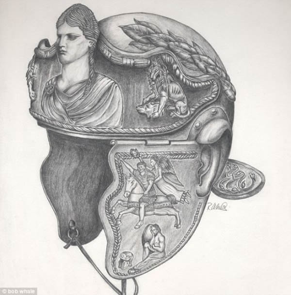 3年前,金属制品保护专家玛里琳-霍克开始头盔复原工作。她说:“在复原过程中,我们发现了一些令人吃惊的东西。颊革的特征告诉我们,这是一个非同一般的头盔。”头盔上的图案讲述了古罗马军团取得的一系列胜利,其中包括两侧站着狮子的女性半身像以及骑在马背上的罗马皇帝,他的身后飞着胜利女神,马蹄下踩着一个畏缩的人,可能是英国人。