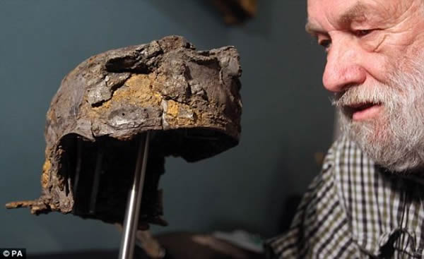 10年前,一位金属探测迷使用260英镑(约合402美元)的二手金属探测器无意间在莱斯特郡的哈勒顿发现了这个头盔。这个幸运的家伙就是71岁的肯-华莱士,曾是一位设计与技术教师。发现头盔后,他立即与专家取得联系。除了这个头盔外,他还发现5000多枚硬币、锭铁和头盔护耳以及烤乳猪残骸。这是第一次同时发现英国铁器时代和罗马帝国的硬币。