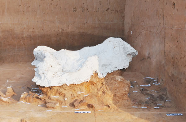 第三,多个用火遗迹所组成的复杂居住面的中心营地出现,偏好收集并带入居址内大量狩猎对象的下颌骨,以及远距离搬运紫红色石英砂岩堆砌石堆,并摆放古棱齿象头等明显具有象征意义的非功利性行为的存在等,均是史前学界判断现代人行为的典型标志。这些行为特征是迄今为止,首次在中原地区以及东亚大陆距今3-5万年的旧石器遗址中被发现。