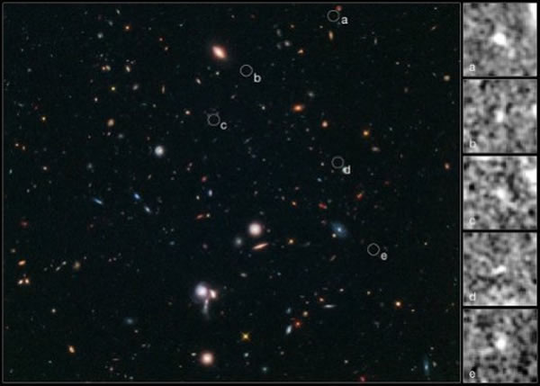 哈勃太空望远镜能窥探凝视到131亿年前宇宙大爆炸之后仅6亿年前的情景,该望远镜观测到怎样的情景呢?5个星系彼此猛烈碰撞,或许已成为目前的一个超大合并星系。