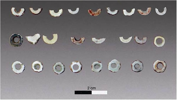 水洞沟遗址2号点第2文化层出土的鸵鸟蛋皮串珠装饰品(关莹供图)