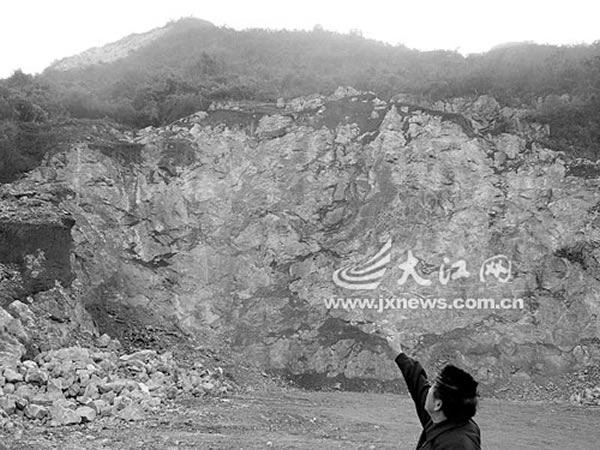 ¼¦¹«É½µÄɽÌåÔâµ½ÆÆ»µ£¬Õ¨É½È¡Ê¯ÒѽӽüÒÅÖ·(ɽµÄ±³Ãæ)µÄ¿ØÖƵشø