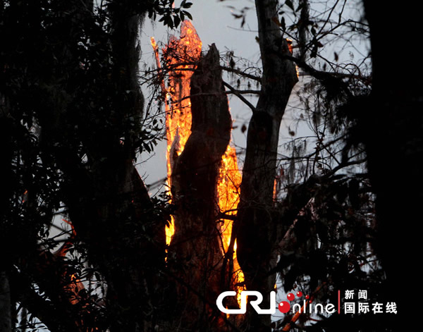 3500年的世界最古老柏树突然起火 来源: 蜘蛛网 时间:2012年1月18日 13:04 3500年的世界最古老柏树突然起火 3500年的世界最古老柏树突然起火 2012年1月16日,美国朗伍德,塞米诺尔消防局公共信息长官史蒂夫·赖特与弗罗里达农业部调查员肖恩共同在事故现场调查。巨树公园有一棵世界最古老的柏树,它大约有3500年的历史,高118英尺,名为“参议院”。周一早晨,该树发生起火事故。 cfp 上一篇 下一篇 TAG: 柏树