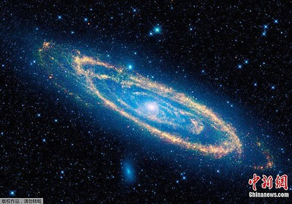 据英国《当今天文学》(Astronomy Now)杂志在线版近日刊登消息称,天文学家利用美国航天航空局(NASA)的哈勃太空望远镜拍摄到了著名的仙女座M31星系中大量极其罕见的蓝色恒星,而被蓝恒星围绕着的、位于仙女座螺旋星系附近的一个超大质量黑洞,居然等同于太阳质量的一亿倍。