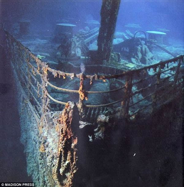 “泰坦尼克”号静静地躺在海底,经过长达100年的侵袭,残骸早已经锈迹斑斑