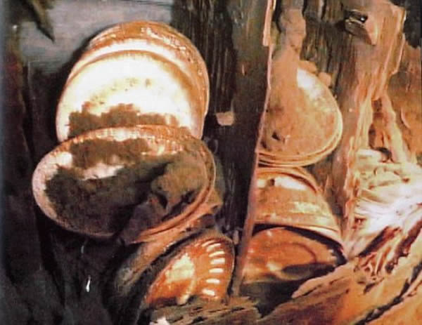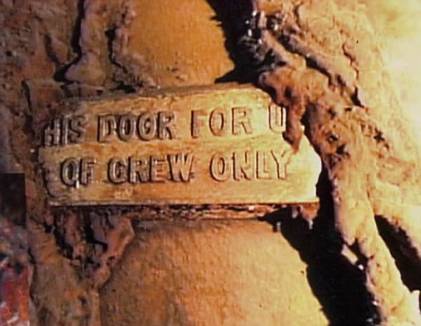 不过,我们没有发现“泰坦尼克”号的4个巨大通风井,在开始沉没时,它们显然已被撕裂。它们的碎片到处都是,覆盖了一片广阔的区域。幸运的是,我们还是得以一瞥一些船舱的内部景象,这要感谢外部的钢板在灾难中被无情剥离。虽然木制品和织物早已经不复存在,但金属墙壁和铜制配件还是保留下来。最令人感到心疼的是史密斯的船长舱,按照带有英雄色彩的航海传统,他与自己的船一起沉没。在船长舱的3个房间中,卧室的清晰度最高,瓷浴缸仍保存完好。