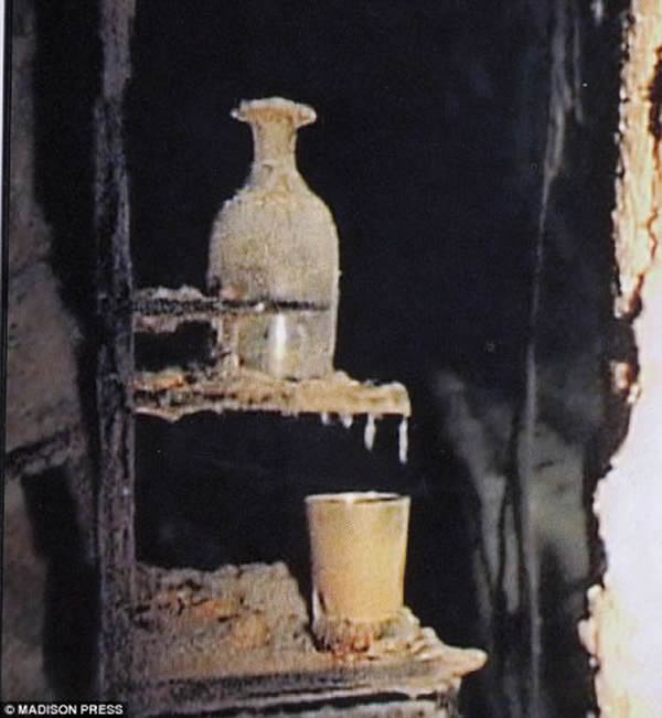 卡拉卡夫瓶和玻璃杯仍然站立并在“泰坦尼克”号沉没后幸存,状况几乎与最初时一模一样