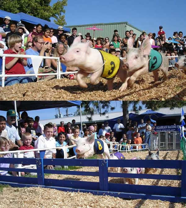 美国举行小猪快跑 来源: 蜘蛛网 时间:2012年1月21日 14:11 美国举行小猪快跑 2012年1月20日,美国马特诺莫县,小猪竞速赛上,小猪们在60英尺长的跑道上以20迈的速度奔跑,跨越防护栏,这一场景让在场的孩子十分兴奋。在美国西部闻名这场赛猪运动比赛上,每一轮有四只可爱的小猪一绝高下。在紧张的比赛氛围的诱使下,当然还有终点处食物的诱惑下,小猪们奋力跨过两英尺高的围栏。比赛虽然是为了取悦儿童设置的,但也可以看到一些热衷于这项比赛的大人们欢呼雀跃。 国际在线 上一篇 下一篇 TAG: 美国