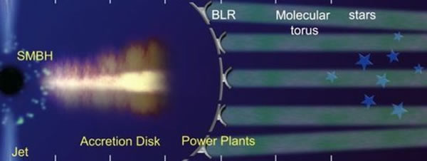 它们可以进入星系中心的超大质量黑洞,并将其作用能量中心。黑洞强大的引力使得外星生物可以将其开发成“引力发动机”,极为方便地将物质转化为能量,这比核聚变所产生的能量有效。在我们银河系中央的超大质量黑洞具有40亿倍的太阳质量,吸积盘上盘踞着数百万度的气体物质足以提供巨大的辐射能。台北天体物理学和天文学研究所的研究人员诚井上(Makoto Inoue)和日本千叶大学的横尾広光(Hiromitsu Yokoo)认为先进的外星文明可能集中资源在星系核心区域建造环形“能量站”,可围绕着中央大黑洞旋转,并处于太阳系面积大小的吸积盘之外。