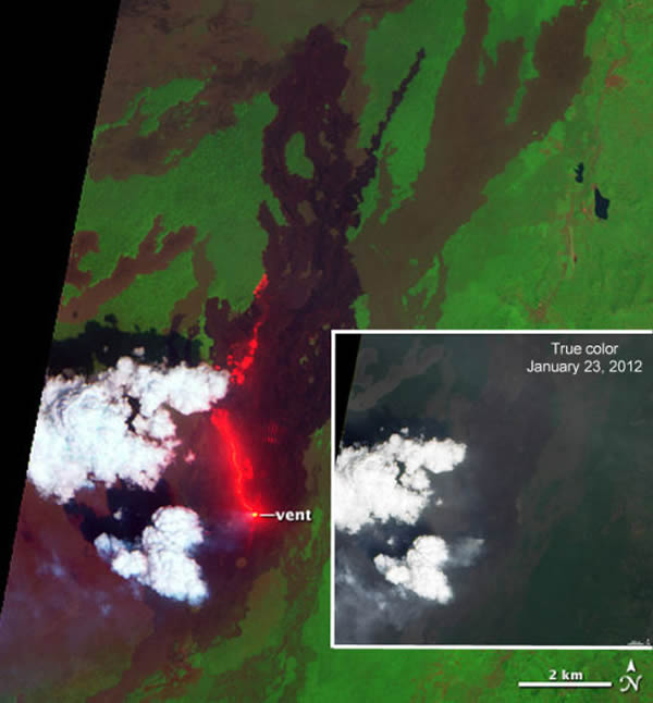 熔岩流仍然在持续不断地从尼亚穆拉吉拉火山口喷发出来。2012年1月下旬拍摄到的最新卫星图片(尤其是红外图片)清晰地显示了这股熔岩流。