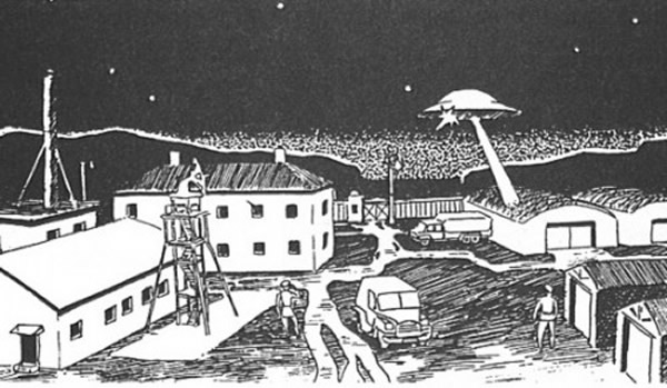 人们认为,有一个火球状的飞碟摧毁了发射台上的三个苏式火箭,另外一架飞碟袭击并摧毁了火箭燃料库房……所有这些地方距离日库尔地下飞碟研究基地都还不到几米远。