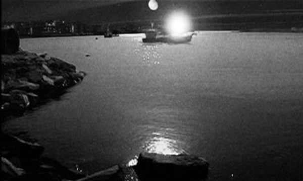 劳里?威肯斯和他的朋友们一路追踪着那个奇怪的物体。突然,他们看到一道光一闪而过,随之听到一个呼啸的声音,像是一颗落下的炸弹。他们觉得它可能落入了港口,于是便加速朝着海边驶去。