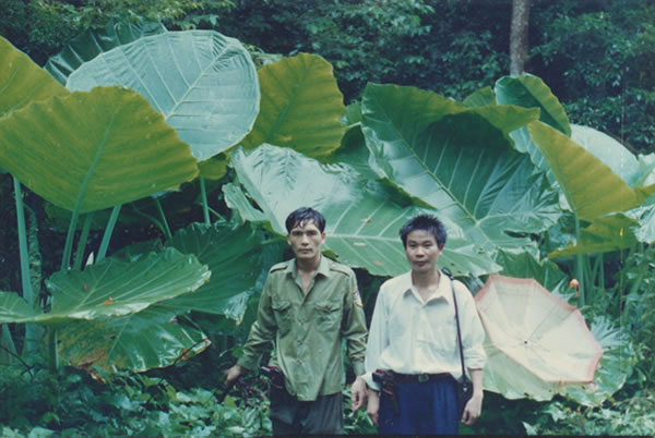 月亮山中遍布珍奇植物,人与巨叶形成鲜明对比。图片由朱法智提供