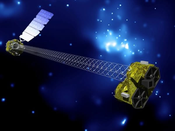 “核频谱望远镜阵”X射线空间望远镜有效地作为美国宇航局钱德拉X射线空间望远镜和欧洲XMM牛顿X射线空间望远镜的补充,后两者只能在较低能量的波段观测X射线闪光。需要指出的是,X射线空间望远镜的图像不可能和哈勃望远镜拍摄的图像媲美,毕竟哈勃是以可见光波段为主。“核频谱望远镜阵”将在接近赤道的近地轨道上工作,由空射型的飞马座火箭在马绍尔群岛夸贾林环礁附近发射入轨,时间为3月14日。“核频谱望远镜阵”的光学系统采用两套掠射式成像系统,共133个同心环面组成。由于X射线需要一个较大的区域对焦,因此其采用了33英尺的焦距,可在发射后展开。