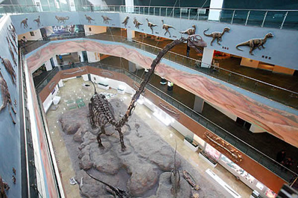 新疆首家古生物博物馆——昌吉恐龙馆落成 来源: 蜘蛛网 时间:2012年2月15日 13:05 新疆首家古生物博物馆——昌吉恐龙馆落成 新疆首家古生物博物馆——昌吉恐龙馆在昌吉市落成。目前该馆已进入最后收尾工作,预计5月正式对外开放。据了解,该馆于2009年5月开工建设,建筑面积达8000平方米,展厅共分三层。主厅展出于2006年在奇台县恐龙沟出土的亚洲第一恐龙化石,两个副厅展出新疆境内挖掘出土的十几类恐龙化石以及同时代的其他生物化石。图为亚洲第一恐龙化石。 新疆日报 韩亮 上一篇 下一篇 TAG: 博物馆 古生物 恐龙
