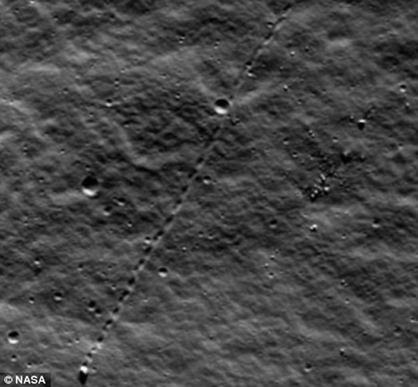 美国宇航局拍摄到月球上巨砾奇特滚动痕迹
