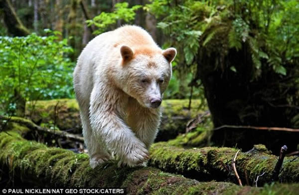这种又被称作柯莫德熊的动物生活在英属哥伦比亚地区的茂密森林里