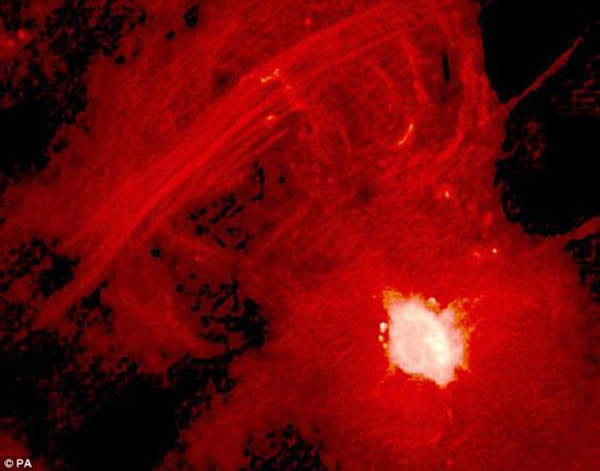 这幅照片是证明银河系中央存在一个超大质量黑洞的第一个证据。这个黑洞的质量相当于370万个太阳