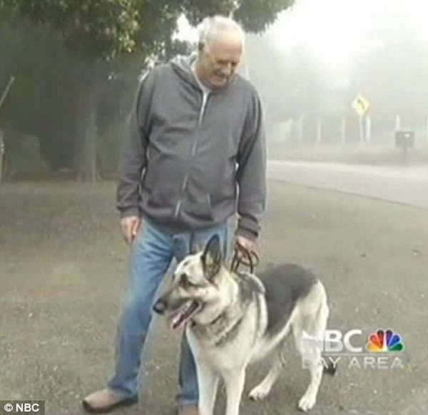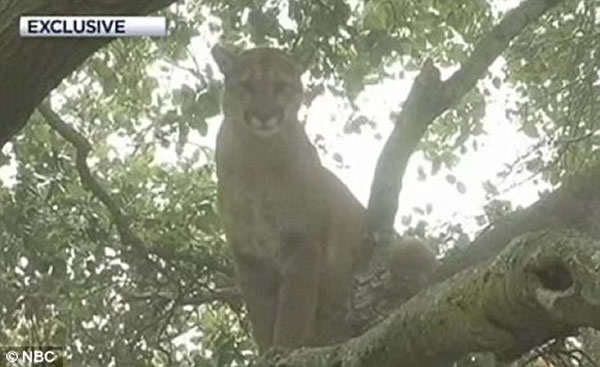 美洲狮被牧羊犬吓跑逃到树上“避难”