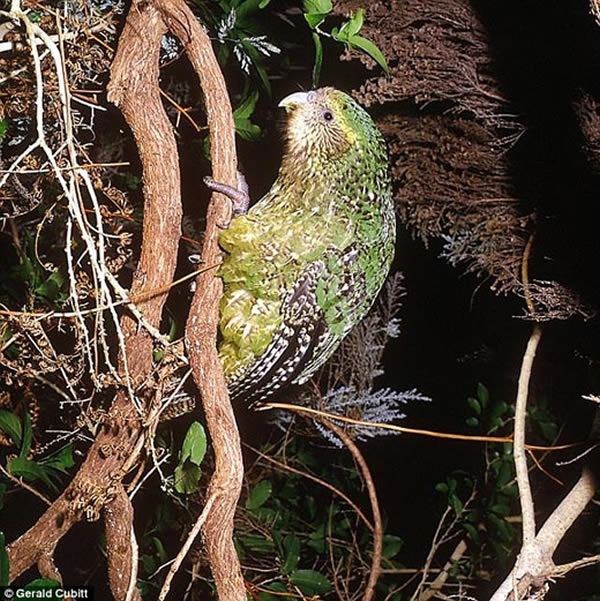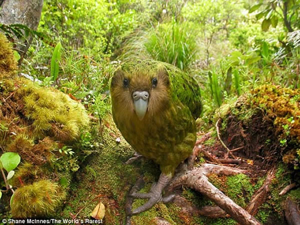 巧妙的伪装:鸮鹦鹉现存数量仅124只,这是摄影师用微型相机在浓密丛林中拍摄到的鸮鹦鹉