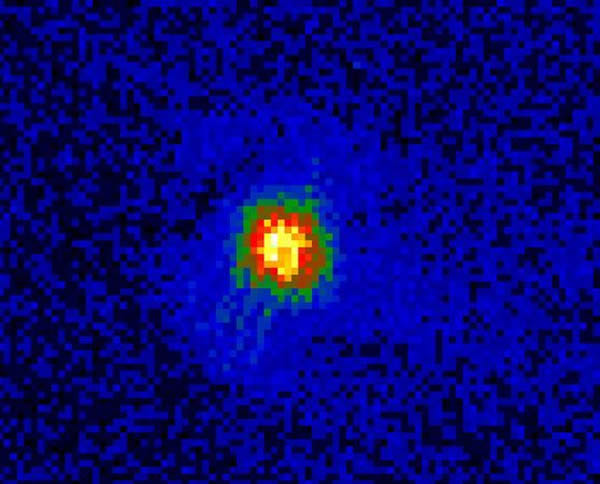 两幅采用正电子成像术(PET)拍摄的图像,展示了老鼠大脑,上面为头部移动未经过校正的图像,下面为校正后的图像。CiSRA在声明中指出:“如果PET技术能够对意识清醒和自由移动的动物进行成像,便可提供更多有用的信息,帮助科学家了解它们的大脑如何在不同环境下应对外部刺激。对意识清醒的动物进行成像难度较大,因为头部移动必须经过准确测算并在图像重建时考虑这一因素。”