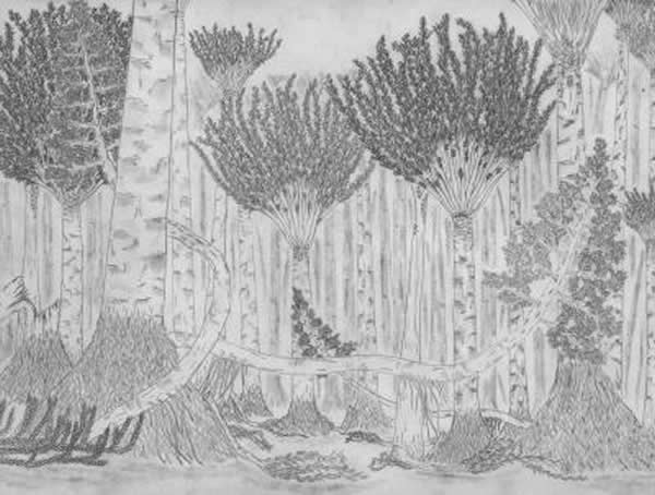 吉尔博树底座呈两米宽的碗形,周围伴以上千树根,因此,整个树估计应有10多米高。它长得很像榈树或树蕨类。研究者还惊讶地发现许多呈水平生长的茎干,高约15厘米,推测为某种匍匐生长的植物(aneurophytalean progymnosperm)。还有一个大型的树形石松簇化石被发现,它是形成欧洲和北美年轻煤层的主力树种。