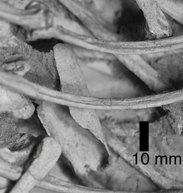 驰龙肋骨下的一小片翼龙骨骼残骸
