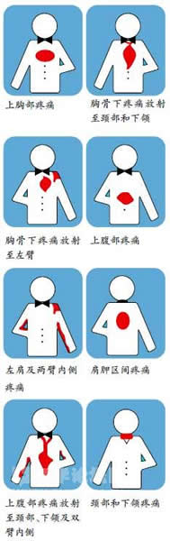 心绞痛和心肌梗死胸痛可能出现的区域及放射区域