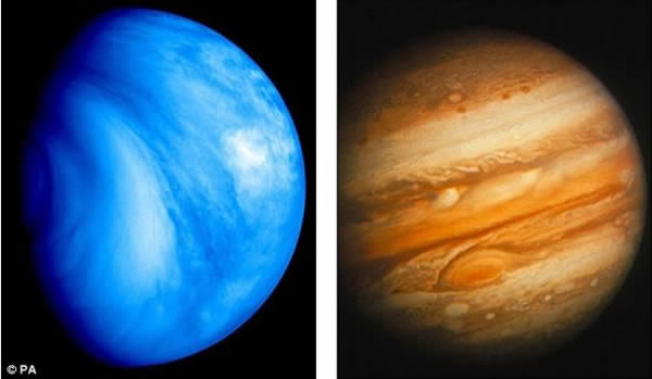 金星和木星,左侧是金星,右侧是木星,可以看到明显的大红斑