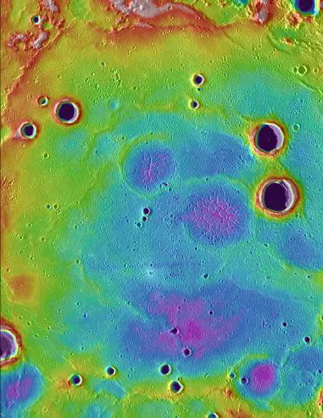 据这些研究人员披露,水星北半球的最突出的特点是一片广阔的容纳有一个火山平原的低地区域。 Zuber及其同事还能够对一个932英里宽(1500公里宽)的Caloris陨石坑进行了检查并确认该陨石坑部分坑底现在已经比其边缘的位置更高。 综合来看,这些特点为水星在其历史的大部时间中肯定承受了强烈的地质物理活动提供了证据。 接着,David Smith及其同事另行对水星的重力场做了第一次的测量,这也转而为人们阐明了该行星的内部情况。