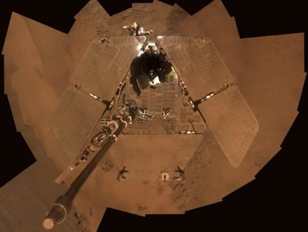 机遇号火星车传回最新自拍照:电池板遭尘封