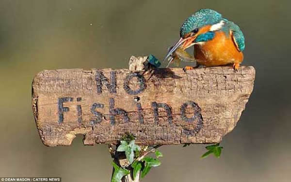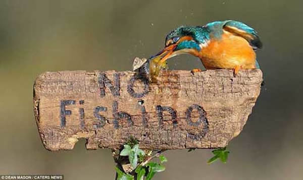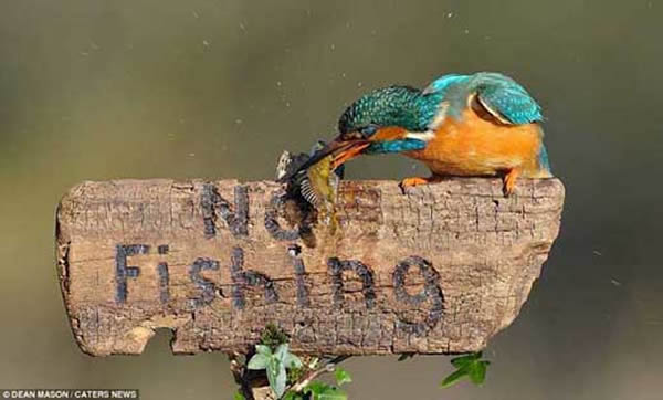 翠鸟公然在“禁止捕鱼”的警示牌上吃鱼 来源: 蜘蛛网 时间:2012年3月29日 10:29 翠鸟公然在“禁止捕鱼”的警示牌上吃鱼 翠鸟公然在“禁止捕鱼”的警示牌上吃鱼 翠鸟公然在“禁止捕鱼”的警示牌上吃鱼 翠鸟公然在“禁止捕鱼”的警示牌上吃鱼 据英国《每日邮报》3月27日报道,英国多塞特郡伯恩茅斯镇的动物摄影师Dean Mason近日在河边捕捉到了一只放肆的翠鸟“违规”捕鱼吃的画面。而更滑稽风趣的是,这只翠鸟叼着鱼,大大咧咧地站在河边树立的“禁止捕鱼”的警示牌上美餐起来,似乎表明对该警示的不屑和挑衅,整个画面十分有意思。 环球网 朱盈库 上一篇 下一篇 TAG: 翠鸟